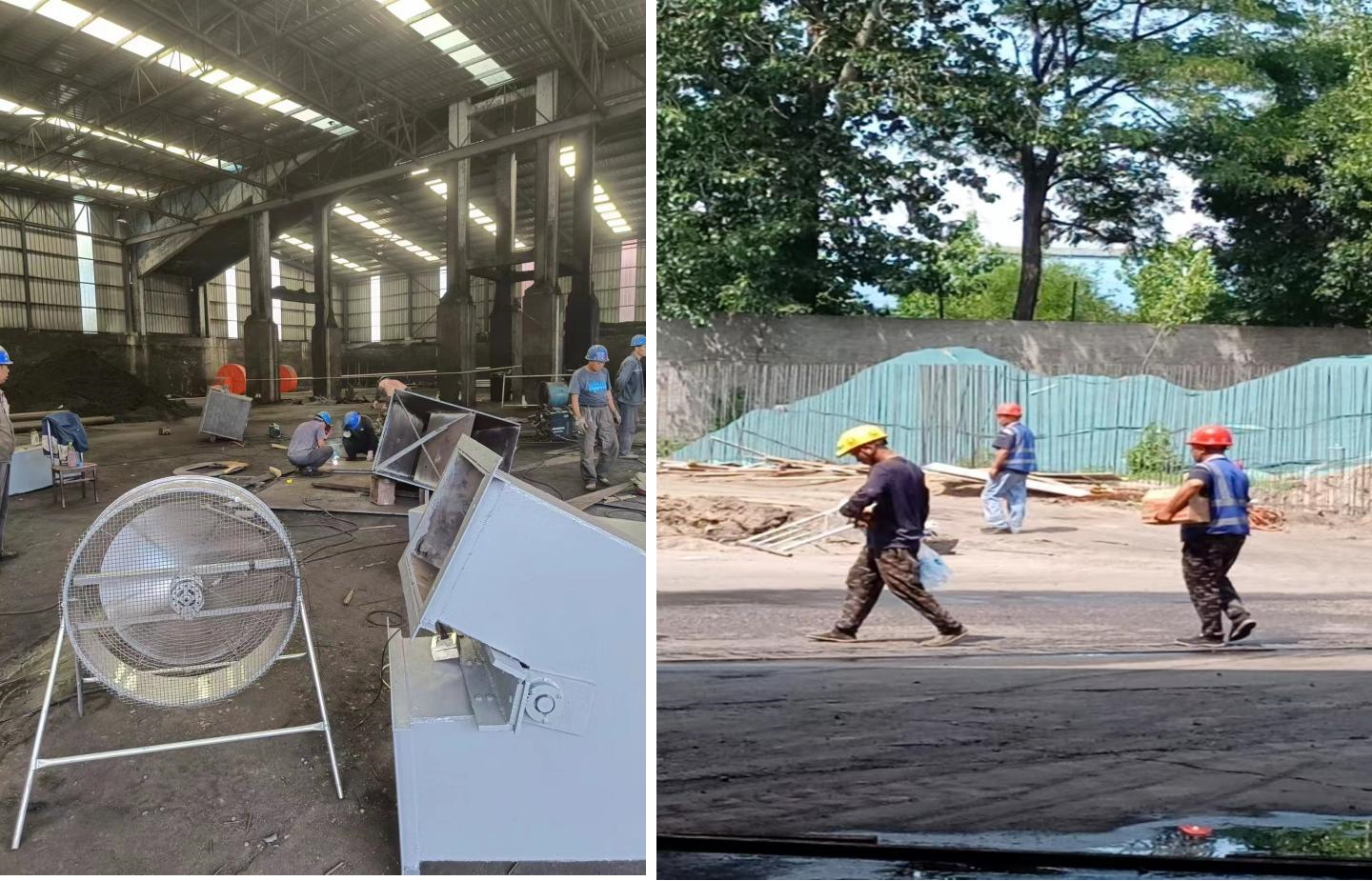(作业现场安装了风扇,为一线工人发放冰棍,矿泉水)