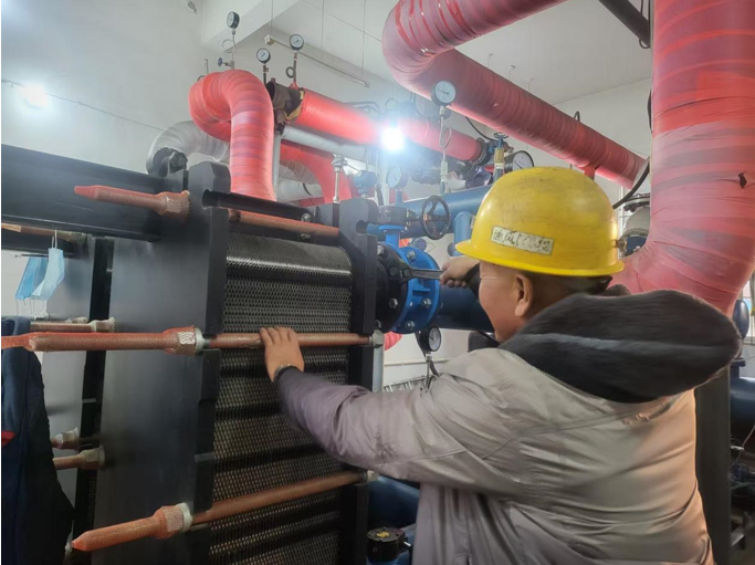 供暖设备的正常运行是实现温暖过冬的关键。技术人员对矿内换热站水泵、换热器等关键设备进行了逐一排查,及时发现并处理了潜在的安全隐患。同时,对供暖管道进行了检修和疏通,确保热水循环畅通无阻。在检修过程中,技术人员严格按照操作规程进行作业,不放过任何一个细节,确保设备以最佳状态投入运行。经过紧张有序的检修工作,现在所有供暖设备均已调试完毕,已经为职工送上温暖。