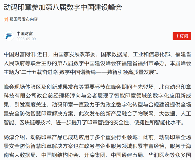 动码印章AI智能印章亮相数字峰会获新华网相关媒体重点报道